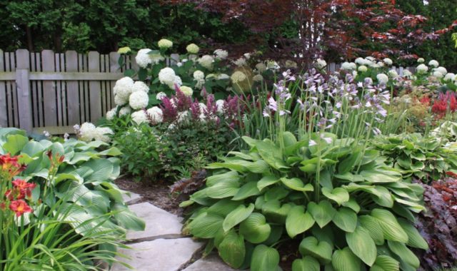 Хоста Сиеболд у успешном баштенском аранжману са разним цвећем