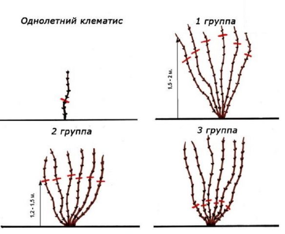 Омоширо спада у трећу групу орезивања сортних вина. Разлика између таквих клематиса је способност формирања цветова на изданцима текуће године. За зиму су гране исечене у једној од опција: