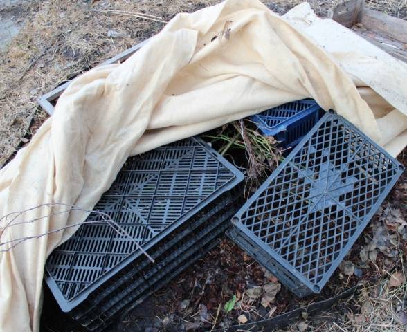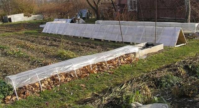 - Суво лишће добро заштитите тло и биљке од првог хладног времена, али се лишће пребрзо распада привлачећи инсекте и глодаре. Лишће се не користи као самостално склониште. То ће захтевати изградњу заштитног оквира преко биљака прекривених лишћем. Листови за склониште користе се само добро осушени од брезе, храста, јавора. На пролеће ће требати времена за уклањање лишћа;
