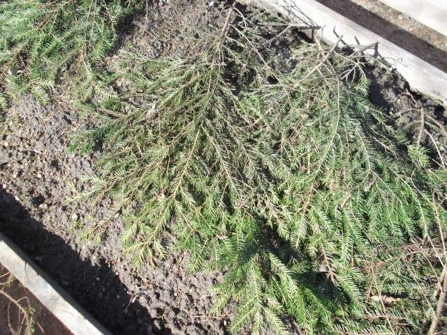 - Гране четинарског дрвећа - смрекове гранчице не захтевају финансијска улагања, изврсно раде свој задатак - штите руже од зимске хладноће. Испод слоја смрекових грана ствара се ваздушни простор који је добро проветраван. Игле плаше глодаре;