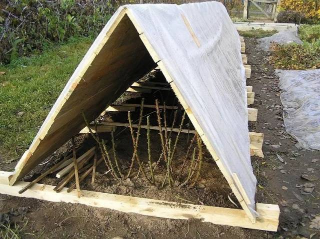 - Даске и шперплоча прилично скупо скровиште за руже, међутим, врло поуздано. Ова врста склоништа најбоље се користи у регионима са хладним зимама и ветровима;