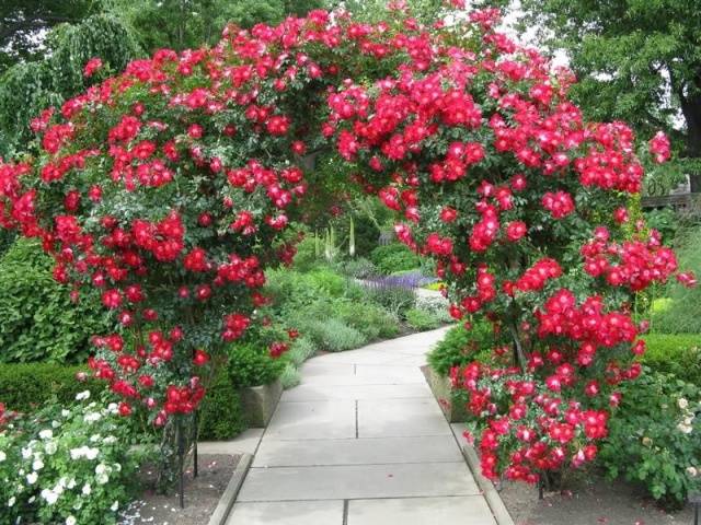 То су коврџаве руже које су посађене поред сводова. Погледајте видео о могућностима садње за пењање сорти: