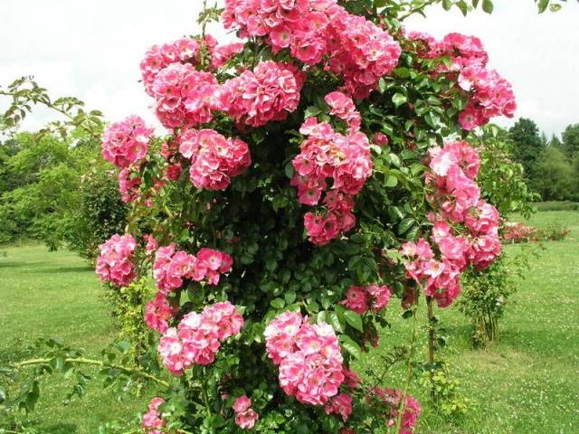 Ова сорта није само популарна - мегапопуларна је широм света од свог настанка. Цвета једном, али цвета врло касно, када су остале руже већ дуго прошле свој врхунац цветања. Сферичне чаше од малине јарке ружичасте боје са светлим центром и великим златним прашницима Бичеви нарасту до 3-4 м дужине, опремљени су великим црвеним трњем, лишће до јесени поцрвени и дуго украшава врт. Најбоље изгледа на таписерији.
