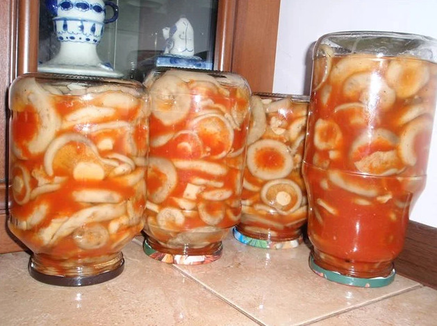 Конзервиране млечне печурке добро се слажу са парадајзом