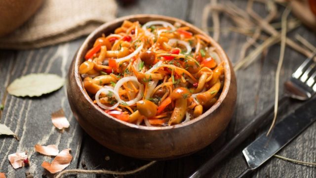 Одличан рецепт за корејску шаргарепу са агарицима меда може постати јело са потписом за свечани сто.
