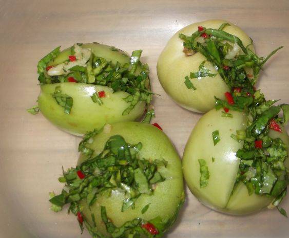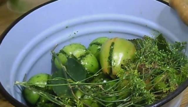 - Смешу одвојите пола сата за инфузију и сипајте зелени јерменски парадајз. Ставили смо угњетавање.