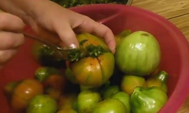 Ако исечете зелени парадајз на четвртине, онда једноставно помешајте све састојке у шерпи за маринирање јерменских жена.