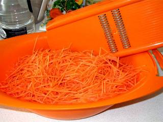 Одвајамо цвасти од карфиола, три шаргарепе на "корејском" ренде, исеците бибер.
