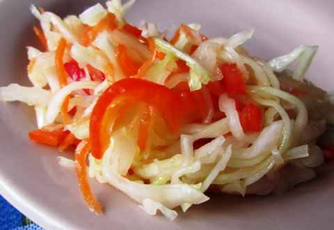 Маринирани купус са бибером, херметички затворен, добро се држи на хладном. Можеш да куваш акутни предјело, додајући чили и бели лук, лако је припремити дијетално јело благог слатко-киселог укуса додавањем још паприке и шаргарепе. Једном речју, опсег кулинарске маште је неограничен. У избору састојака практично нема ограничења. Али производи за ово јело су припремљени на традиционалан начин.