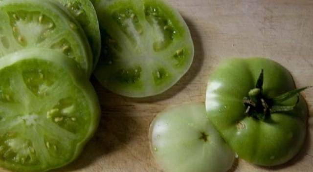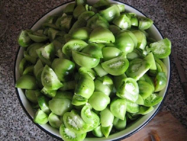 Сортирамо незрео парадајз, оперемо, исечемо на кришке једнаке величине.