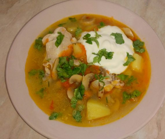 Супа са печуркама, шампињонима, пилетином и пасуљем