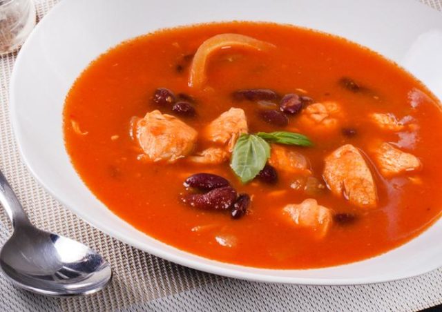 - Чорба се прави на бази филета. Месо се кува најмање 25 минута. Затим се извади из шерпе и исече на коцкице.
