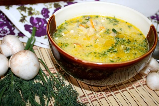 Рецепт за супу од шампињона од печурки са пилетином често се припрема са додатком пасуља. Веома је хранљив и садржи пуно хранљивих састојака. Можете користити и конзервиране и редовне производе.