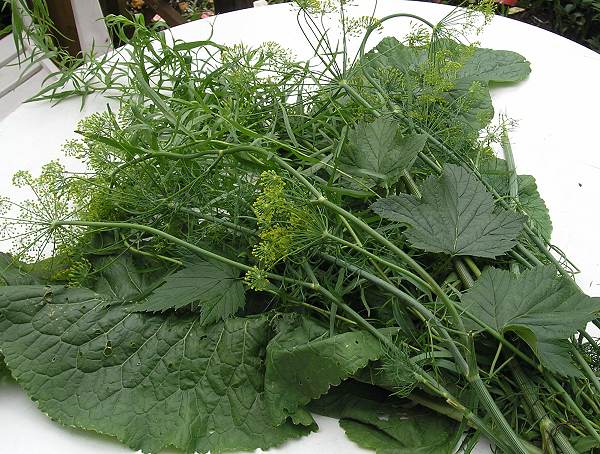 - На дно лименки стављају се исечене цвасти копра, ловорови листови, зрна црног бибера, бели лук и део ризома першуна.