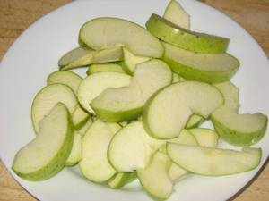 Ако желите да сачувате белину готовог производа, онда је шаргарепу боље исећи на траке. - У јабукама исеците језгро заједно са семенкама и преградама. Исеците на кришке исте величине. Да бисте спречили да јабуке поцрне, ставите их у шољу закисељене хладне воде.