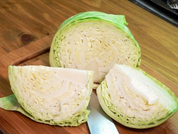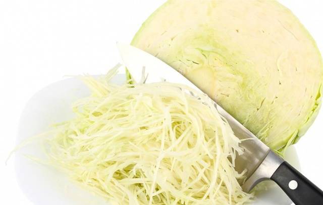 - Скидамо горње лишће са глава купуса, уклањамо пањ, исећи на танке траке.