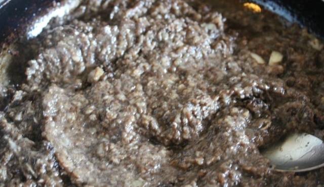 - охлађена маса се меље у блендеру или млину за месо;