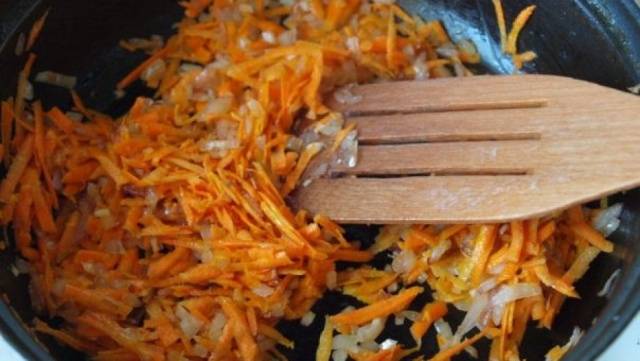 - Сецкани лук и нарибана шаргарепа динстају се 12-14 минута.