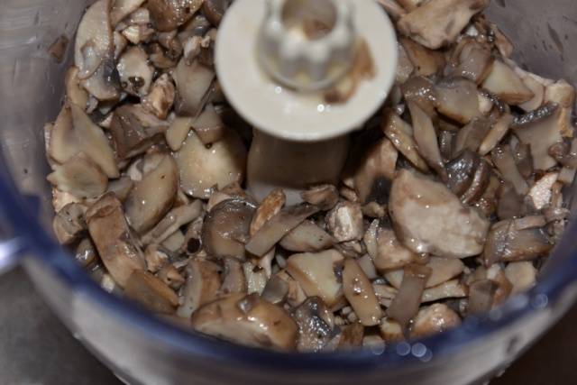- Охлађена маса се меље и меша са куваним и сецканим печуркама, додајући сол и шећер.