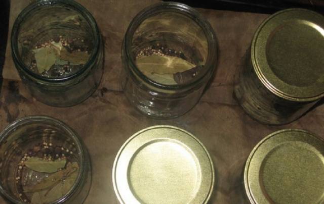 Тренутно припремамо банке. По укусу оперемо, осушимо и положимо на дно зачина: