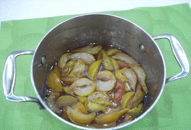 - Кувајте још четврт сата и извршите тест густине. Ако је потребно, џем од крушака се кува око сат времена.