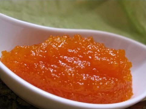 Користећи исту технологију која је детаљно описана у претходном рецепту, прави се џем од крушака са поморанџама.