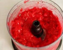 - Млетите блендером док не постане глатко. Ако нема таквог уређаја, можете користити млин за месо постављањем фине решетке.