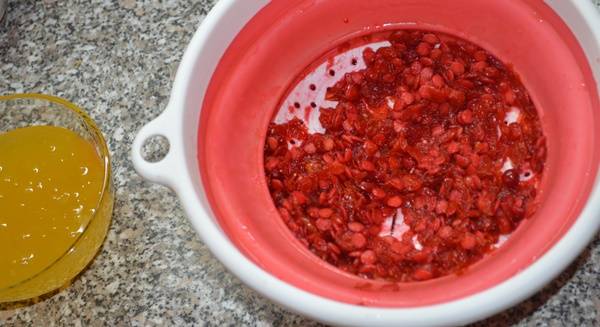 - Према овом рецепту, исцедите сок из сортиране и опране вибурнуме помоћу соковника.