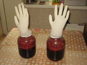 Напуните бобице остатком воде. Кувати док кожа не пукне. У посуду за ферментацију мешамо бобице, чорбу, 1/3 дела сирупа. Да бисте започели ферментацију, додајте грожђице.