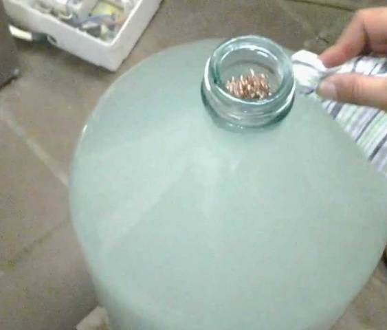 После 3-4 дана активне ферментације, процедите пулпу, покушавајући да не ометате талог, сипајте га у стаклену боцу, пунећи не више од 3/4. Поставите водену заптивку или ставите гумену рукавицу пробијену у један прст. Уклоните вино за ферментацију на температури од 18-24 степени, штитећи боце од директне сунчеве светлости.