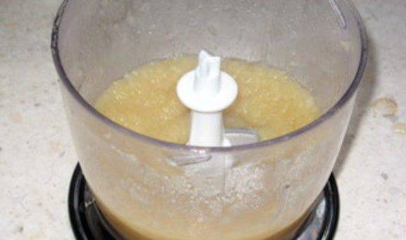 Неопране киселе јабуке исеците на 4 дела и уклоните семе. Самељите их заједно са крушкама у пиреу. Додајте аскорбинску киселину.