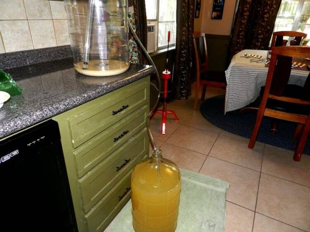После отприлике месец и по дана, када замка за мирис престане да испушта мехуриће угљен-диоксида или рукавица падне, исцедите крушке из талога, флаширајте и однесите на хладно место (10-12 степени) да сазри. Биће кисело-горко и облачно.