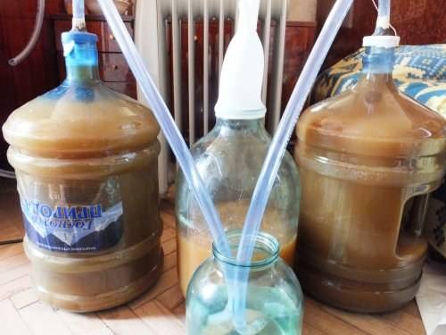 Када се гранулирани шећер отопи, ставите водену заптивку на посуду или навуците гумену рукавицу и оставите је да ферментира. Када се поступак заврши, уклоните водену заптивку или рукавицу, филтрирајте талог и сипајте га у стерилне боце.