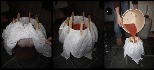 - Припремљене бобице пролазимо кроз млин за месо и стиснемо кроз памучну тканину или газу у неколико слојева.