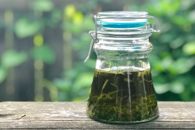 - Листови естрагона благо се гњече, стављају у припремљену суву теглу и сипају алкохолом.