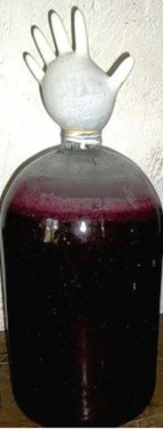 - Посматрајући испуштање мехурића, контролише се процес ферментације шећера. Ово траје 2-3 недеље. Чим горњи слој домаћег вина посветли и престане да пухне, процес је завршен.