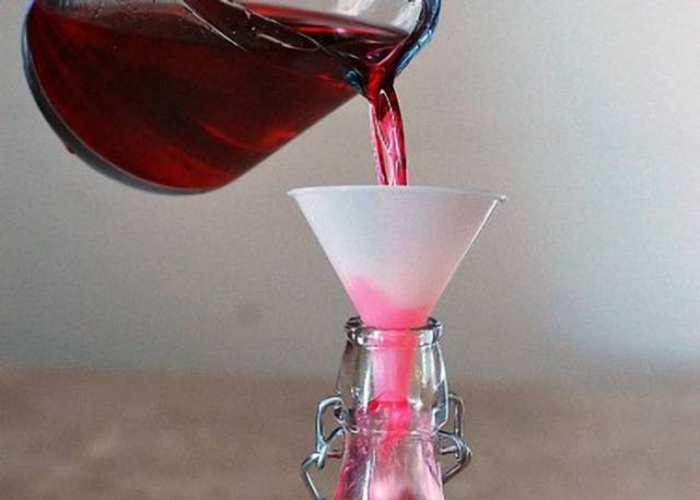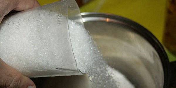 Сада га треба добро исцедити у друго јело. Тамо стиснемо лишће и одбацимо. Они су урадили свој посао и више неће бити потребни. Треба измерити количину сладовине и додати око 100 г шећера за сваки литар сладовине.