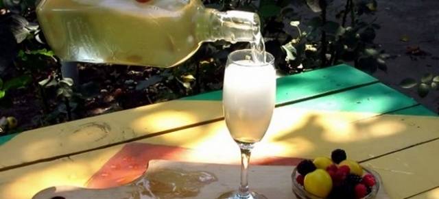Његова припрема се уопште не разликује од претходног рецепта. Додатак малине ће му дати ружичасту боју и пријатан укус. Треба га сломити и пустити да ферментира три дана, док се лишће грожђа инфузира.