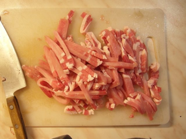 - Месо за рецепт боље је узимати из лопатице, ова реза је мекша и мање масна, исечена је на танке траке.
