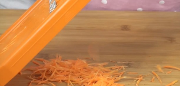 - Кувајте шаргарепу, прођите кроз ренде са млазницом на корејском језику.