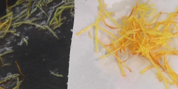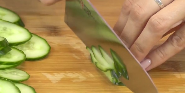 - Поврће се сече истим уским тракама у различитим контејнерима.