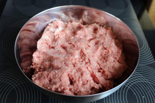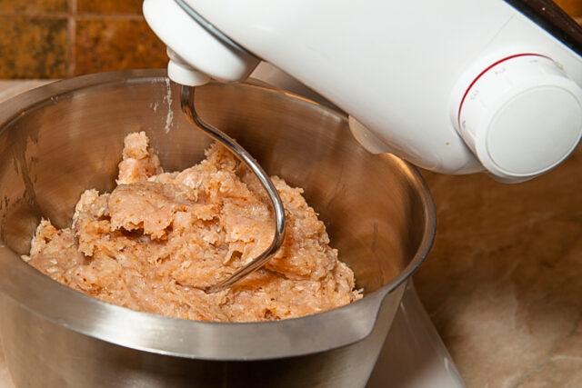 - Комбинујте све састојке у дубокој посуди, темељно мешајте млевено месо, најбоље миксером.