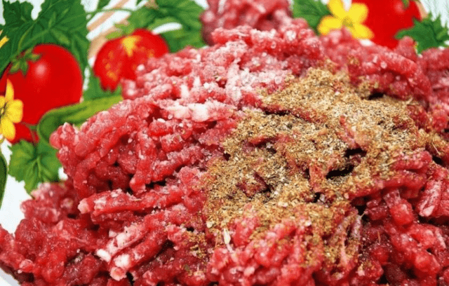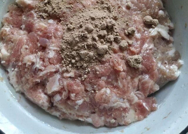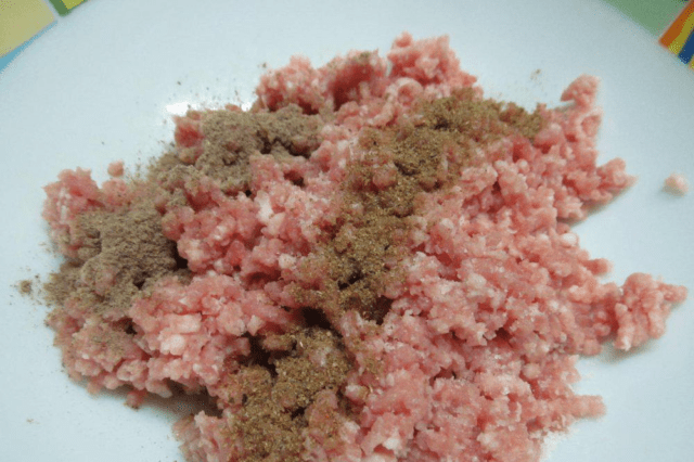 - Помешајте зачине и шећер. Додајте их у млевено месо, темељно мешајте, вратите у замрзивач на сат времена.