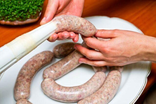 - Висите кобасице 2-3 сата на собној температури, омогућавајући млевеном месу да се слегне.