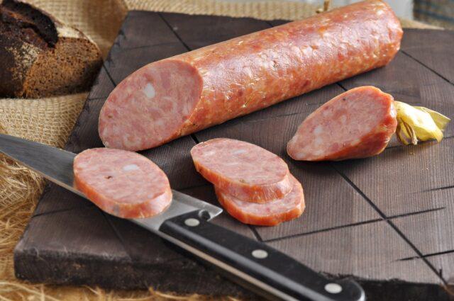 Пре употребе, ова кувано-димљена кобасица се поново проветрава.