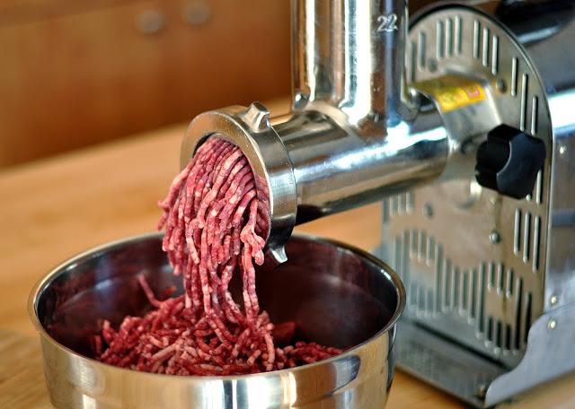 - Прођите говедину кроз млин за месо, сипајте воду, додајте обе врсте соли, млетите блендером.