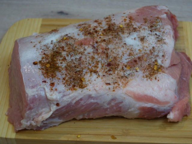 - Овом смешом нарибајте комад свињског меса са свих страна.