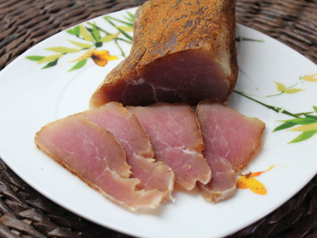- Извадите карбонат из коморе за пушење, окачите га на проветреном месту један дан. Тада можете окусити готов производ.