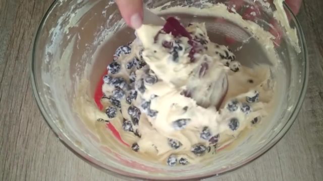 - Бобица без костију скроба додаје се у тесто и меша.