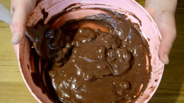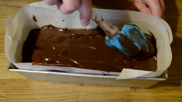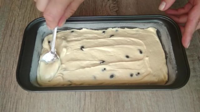 - Припремљено тесто ставља се у калуп, у који је претходно обложен папир за пергамент.